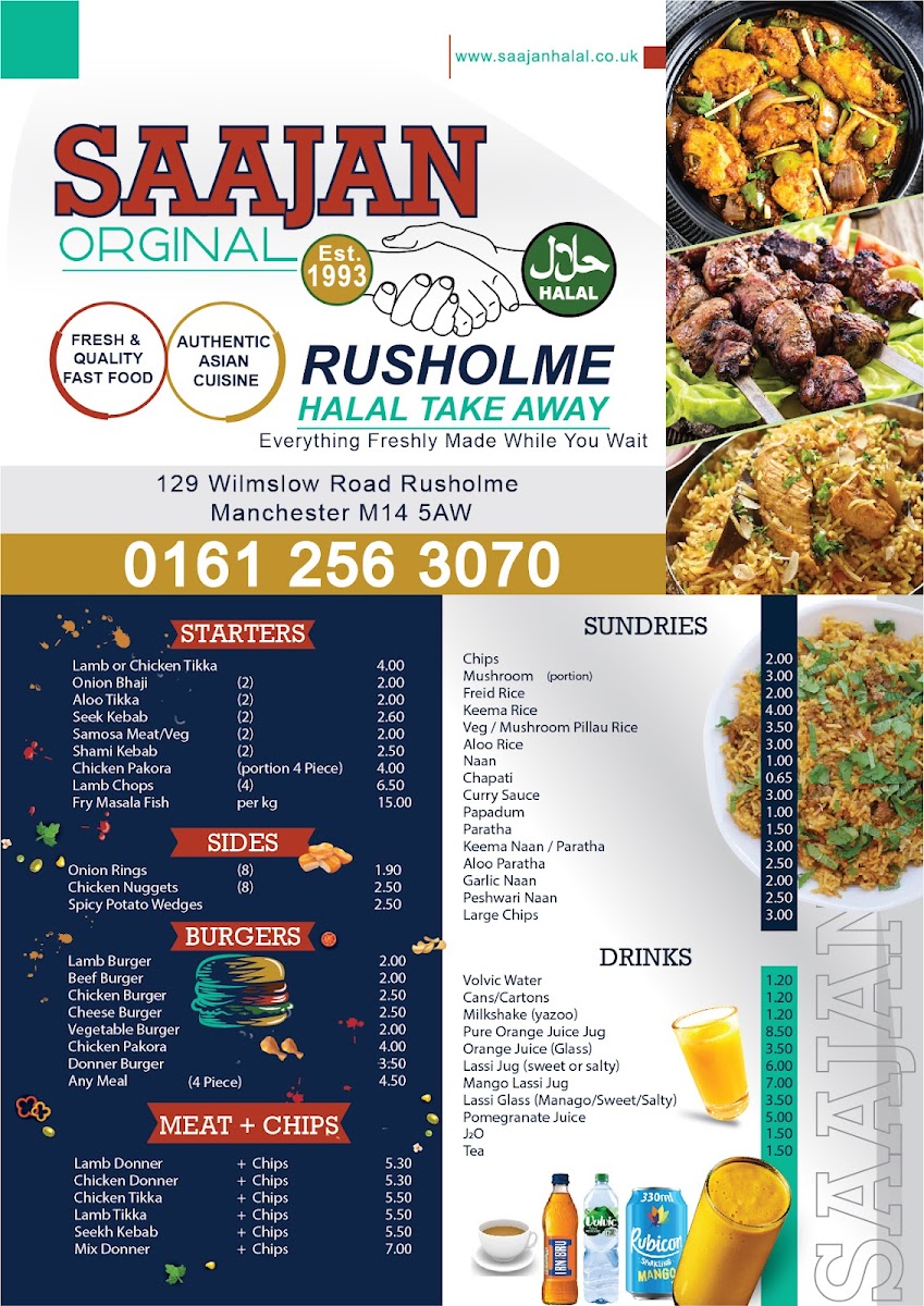 Welcome to Saajan India Halal Takeaway and Restaurant, nestled in the heart of Manchester at 129 Wilmslow Rd. This delightful halal eatery offers a vibrant menu showcasing the essence of authentic Indian cuisine. Each dish is meticulously crafted with an aromatic blend of spices that transports your taste buds to the streets of India.